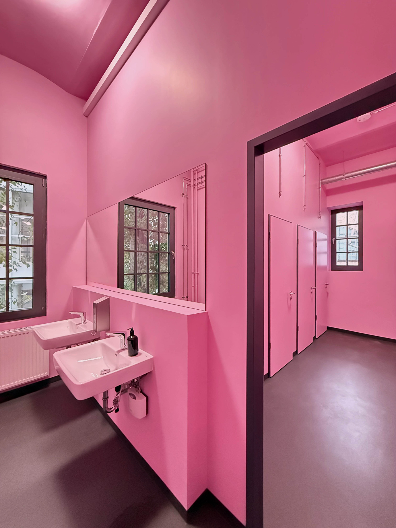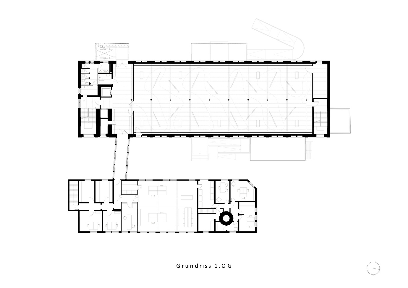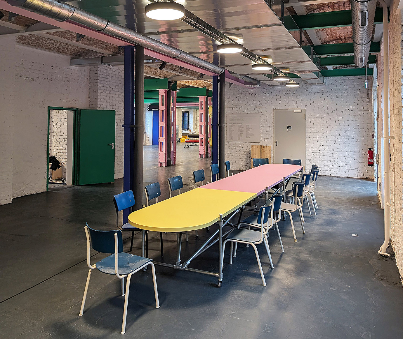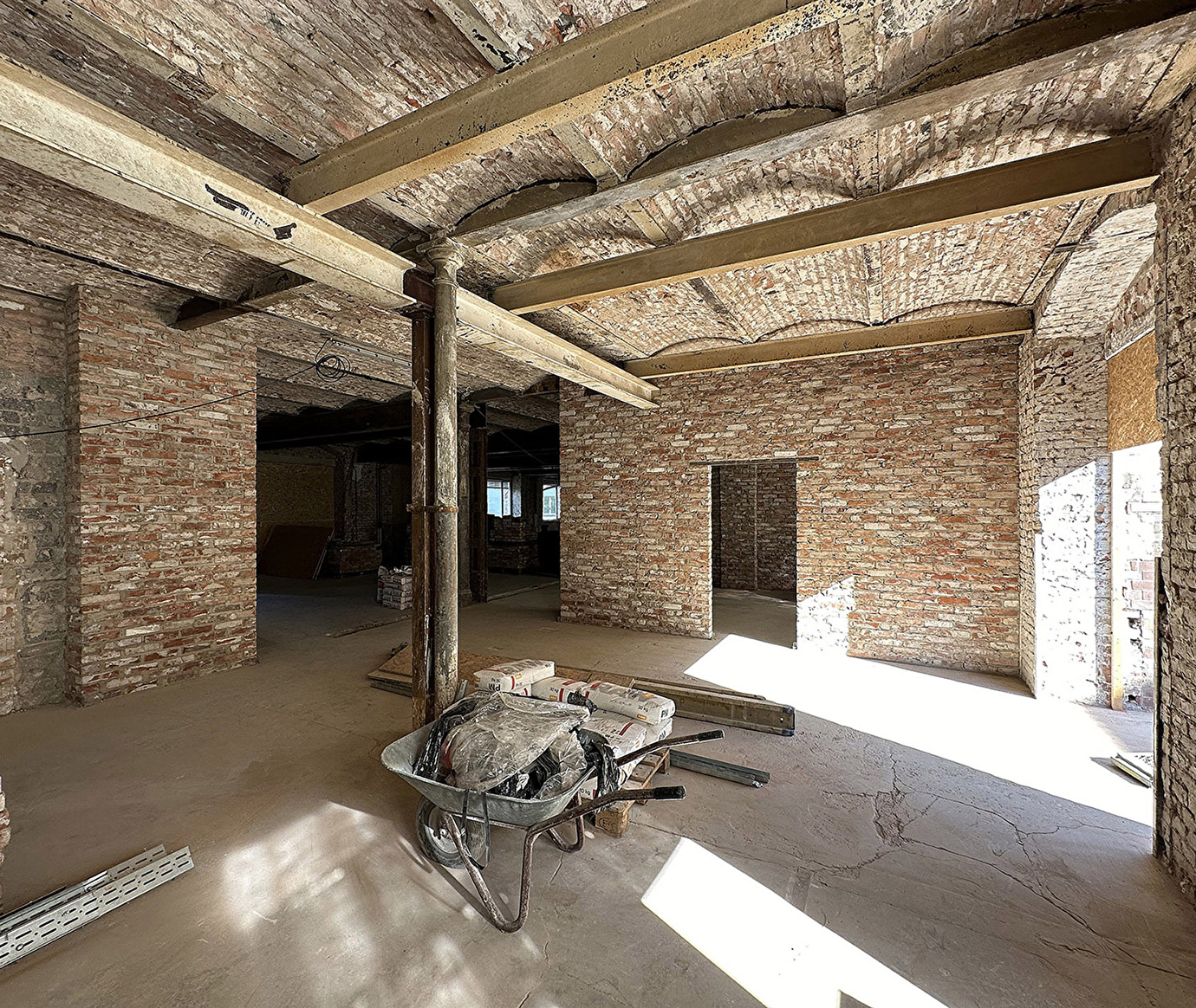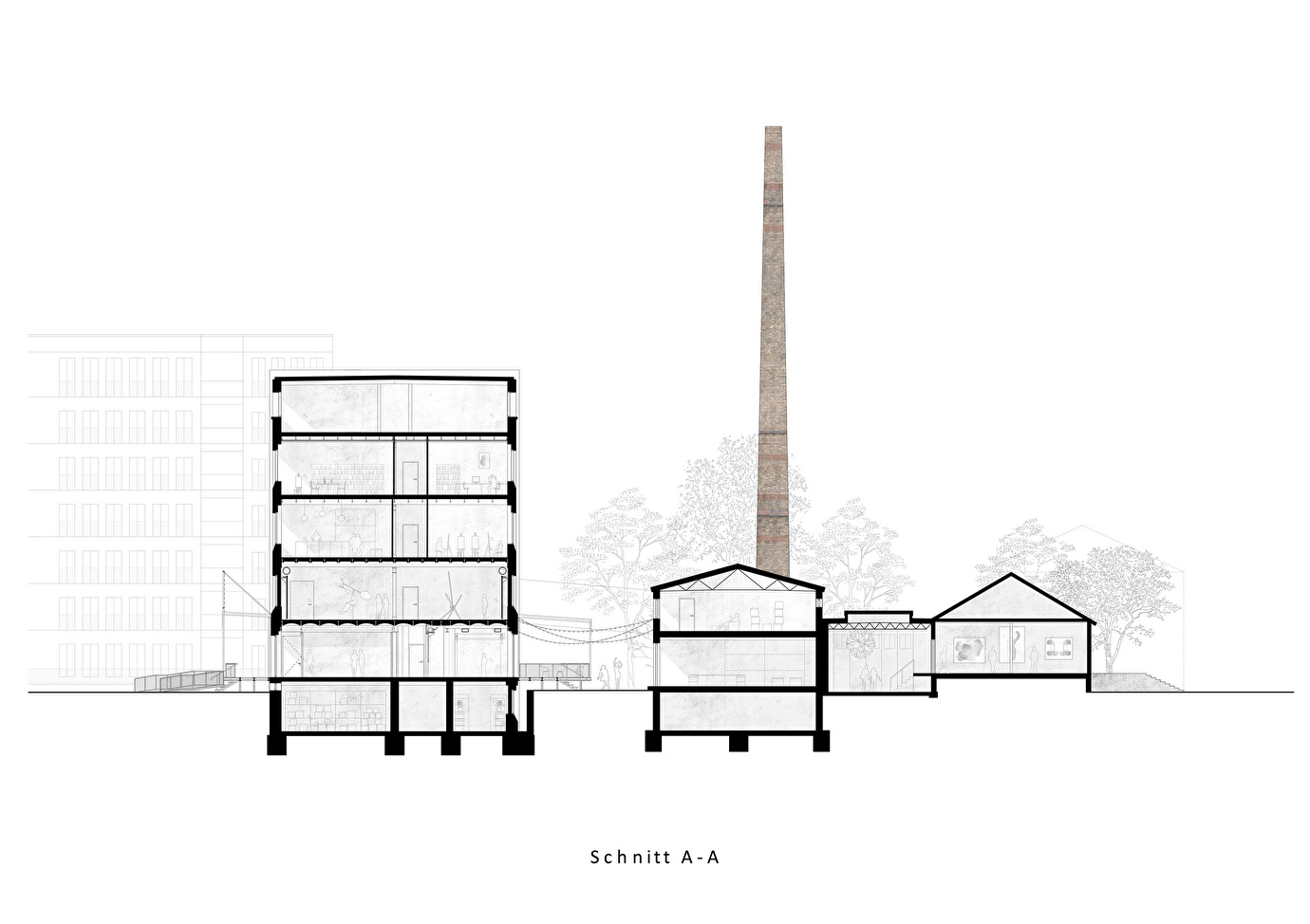 Der Umbau bewahrt den industriellen Charakter und schafft moderne, flexible Räume für Ausstellungen, Veranstaltungen und Bildungsangebote. Die Fassaden blieben weitgehend unverändert, Fenster wurden instandgesetzt oder erneuert – stets im Dialog mit der historischen Teilung. Der neu erstellte Lastenaufzug dient zugleich als funktionales und gestalterisches Highlight.
